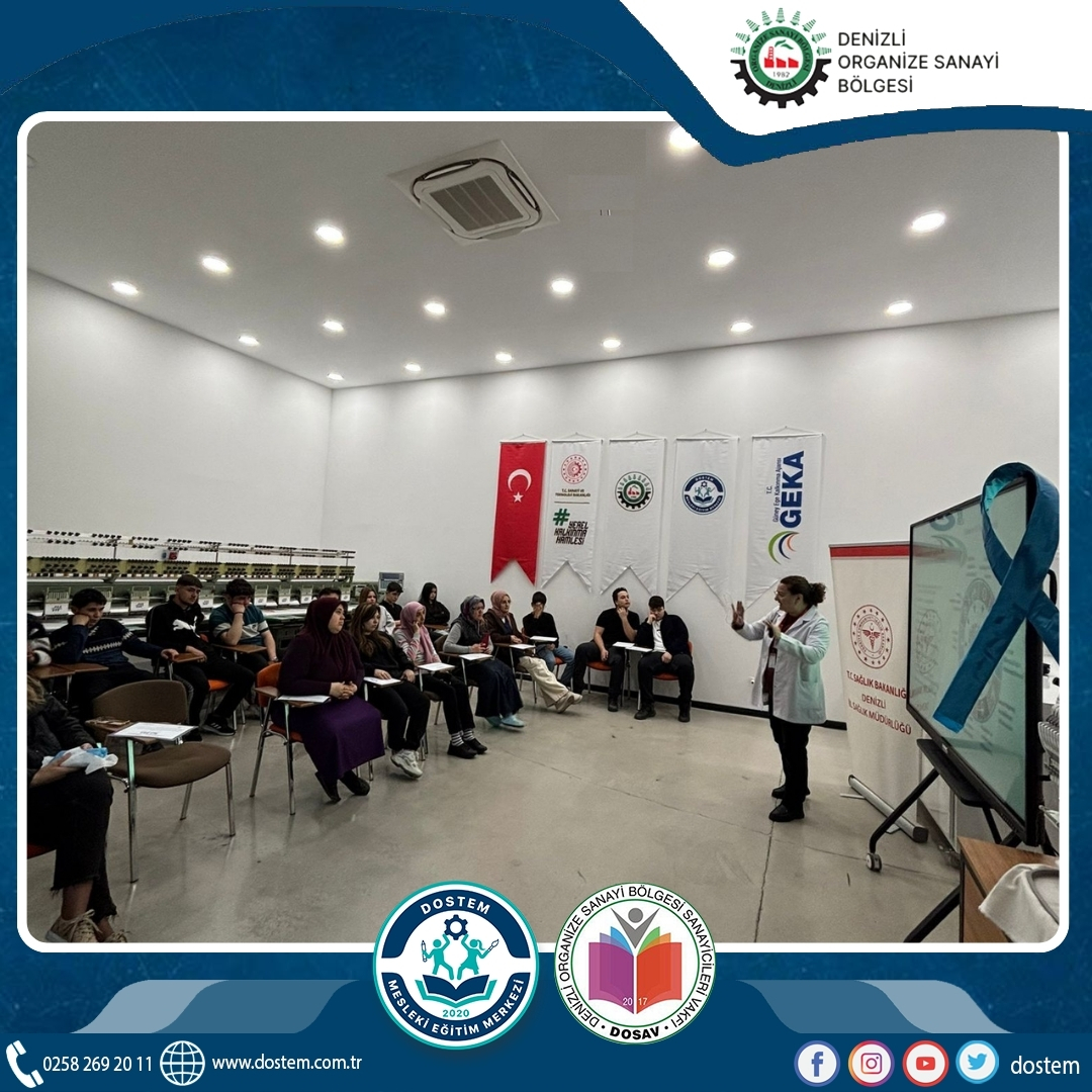 Pamukkale İlçe Sağlık Müdürlüğümüz işbirliğinde #KolonKanseriFarkındalıkAyı kapsamında, Pamukkale Ketem personellerimizden Dr.Banu Meryem Anıl ve Hemşire Atike Akpınar Kalkınç tarafından Dostem Mesleki Eğitim Merkezimizde eğitim gerçekleştirildi.